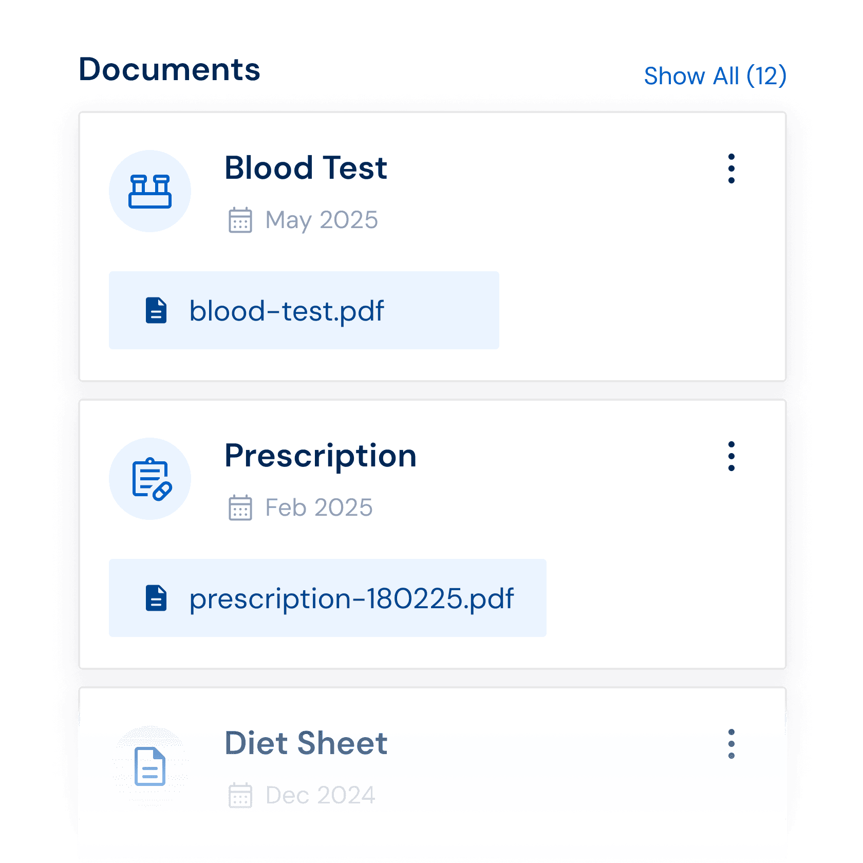Securely store and access your medical documents in one place, with easy sharing options for healthcare professionals and caregivers.