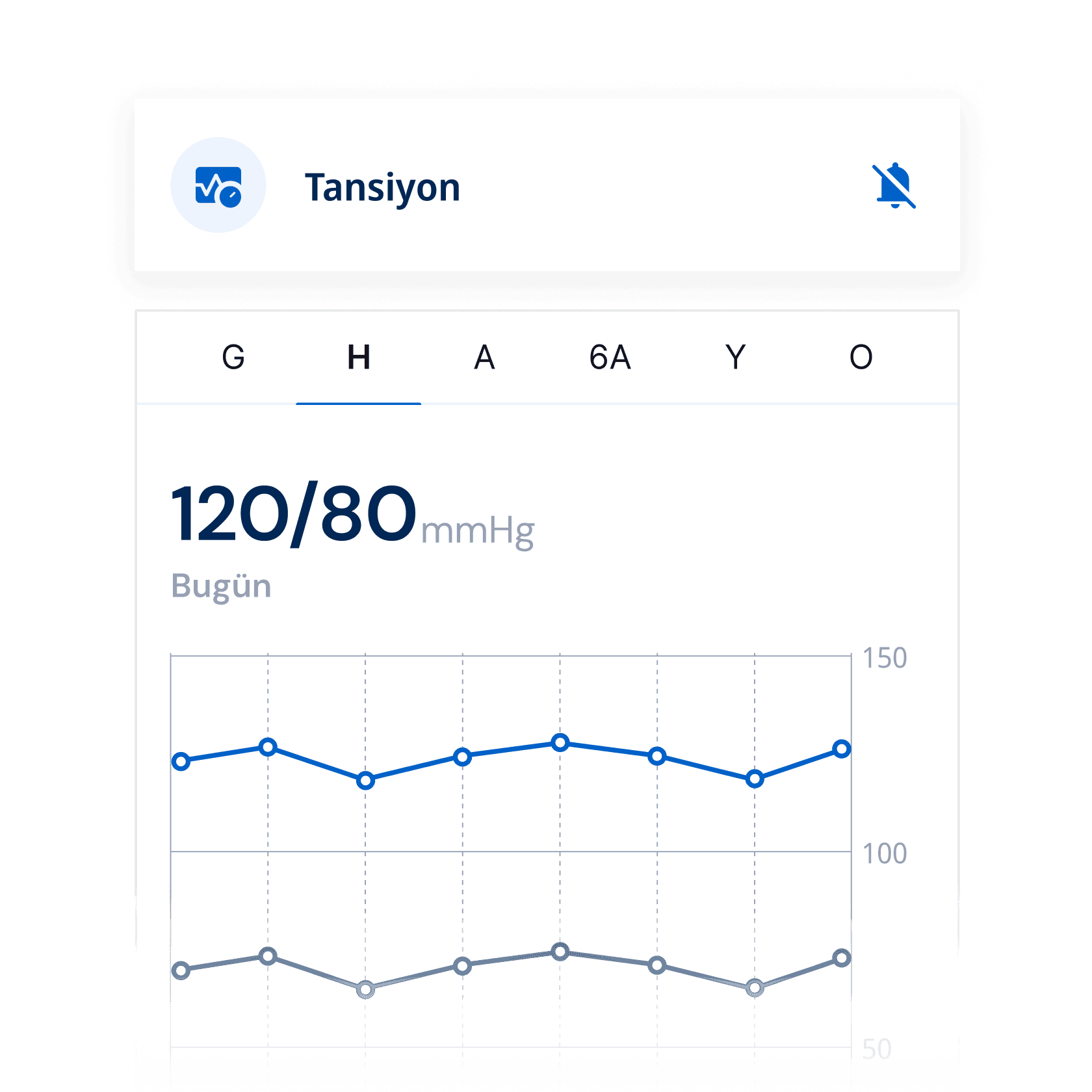 Kan basıncı, kan şekeri gibi ölçümlerinizi kaydedebilir veya kendi ölçümlerinizi tanımlayıp takip edebilirsiniz.