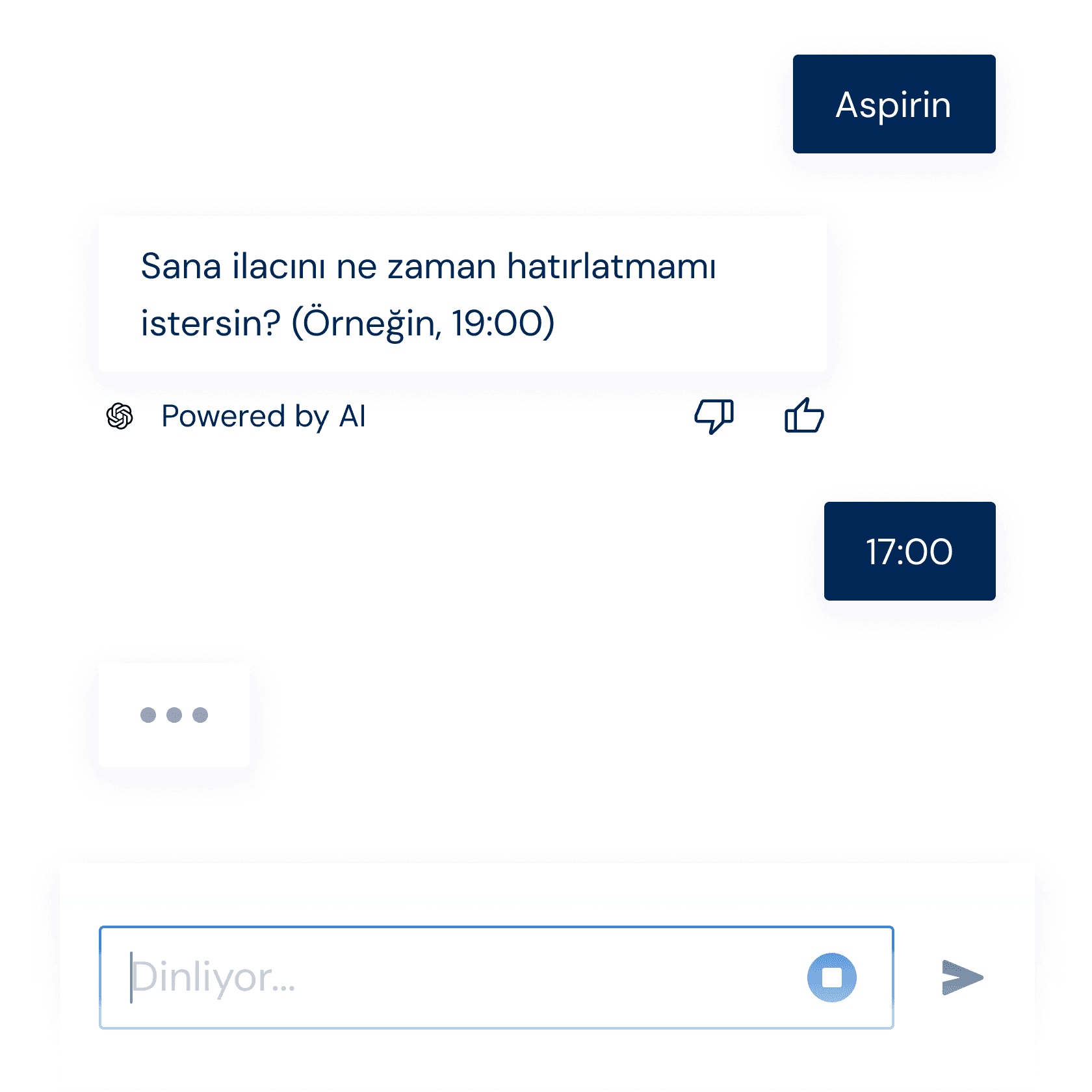 Hastalık özelinde eğitilen dil modeliyle, tedavinizi sesli komutlar aracılığıyla yönetebilir, ilaç takibinizi yapabilir, sağlık verilerinizi takip edebilir ve aklınızdaki tüm sorulara sesli yanıtlar alabilirsiniz.