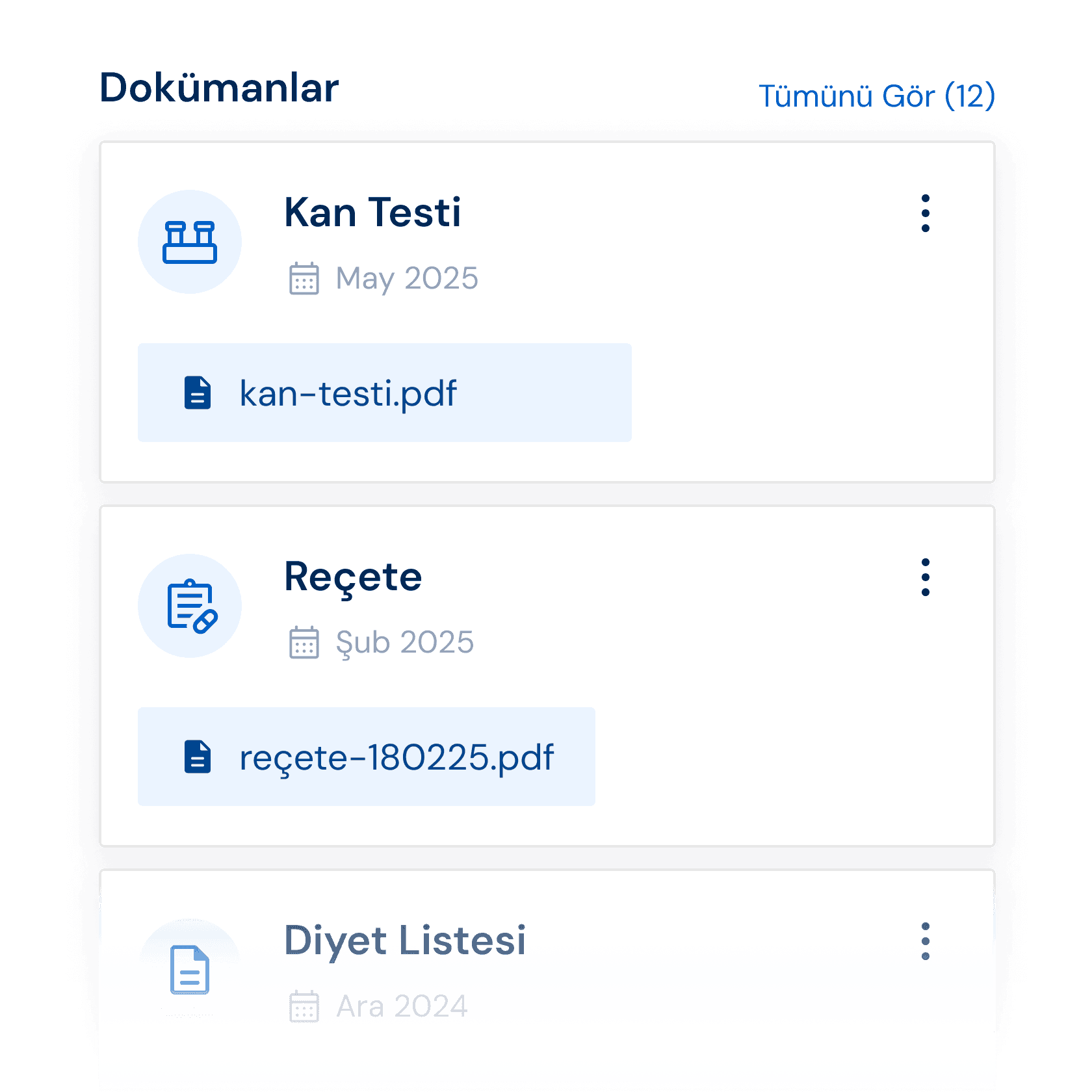 Tüm sağlık belgelerinizi aynı yerde güvenle saklayabilir, gerektiğinde sağlık profesyonelleri veya bir yakınınızla kolayca paylaşabilirsiniz.